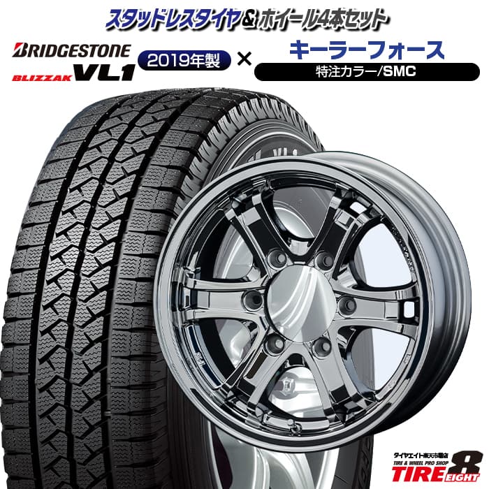 【2019〜2020年製】送料無料 195/80R15 107/105Lブリヂストン ブリザック VL-1BRIDGESTONE BLIZZAK VL1新品 スタッドレスタイヤ ホイール4本セットマッドクロス MC-7615インチ 6.0J 6H139.7ブラックポリッシュ