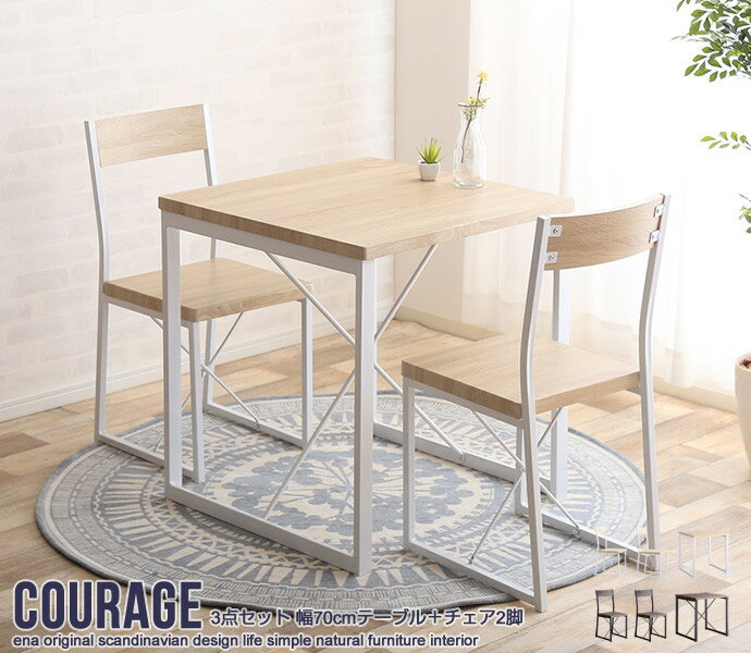 【3点セット】courage 幅70cmテーブル+チェア2脚 カラー:ホワイト[127001_WH]
